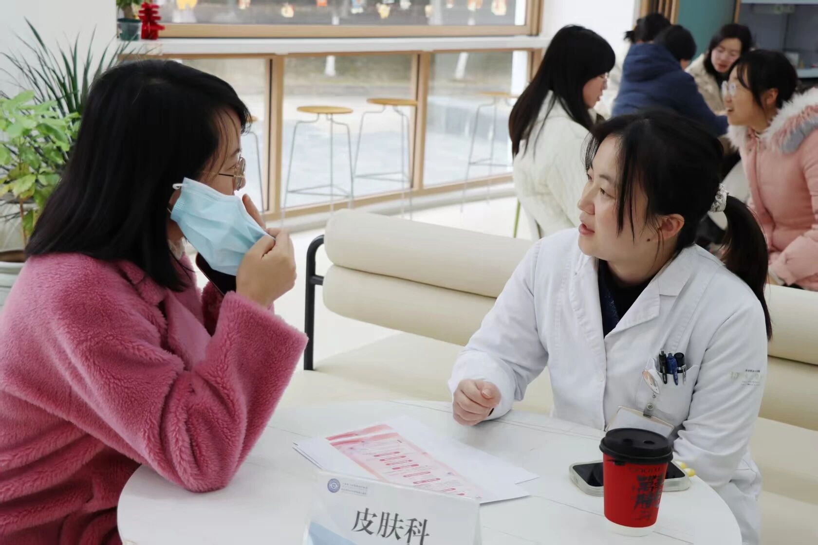 在国际妇女节来临之际,为切实关爱师生身心健康,深入践行“我为师生办实事”初心使命,深化校地共建合作,3月6日,院团委联合南京医科大学附属逸夫医院,在旅享家咖啡馆门口开展春季皮肤健康公益咨询活动,用专业医疗服务为师生送上一份特殊的节日关怀。
