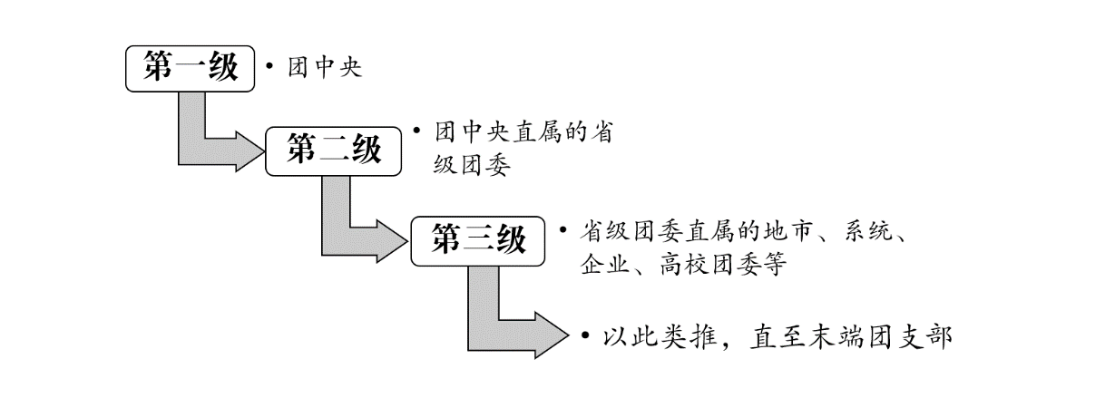 采取逐级向下级推进的方式,创建从团中央到所有基层团支部的完整组织树。各级团组织的组织名称和组织类别由上级团组织管理员创建,其他具体组织信息由本级团组织管理员填写。