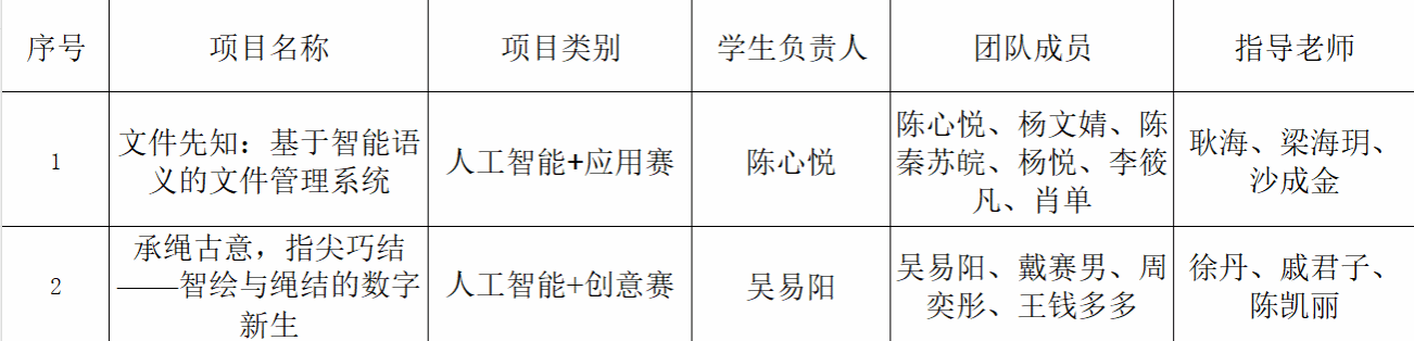 根据《南京旅游职业学院关于开展第十九届“挑战杯”全国大学生课外学术科技作品竞赛“人工智能+”专项赛校内选拔赛的通知》要求,经二级学院初审和校外专家评审,拟推荐以下2件作品参加第十九届“挑战杯”全国大学生课外学术科技作品竞赛“人工智能+”专项赛,现予以公示: