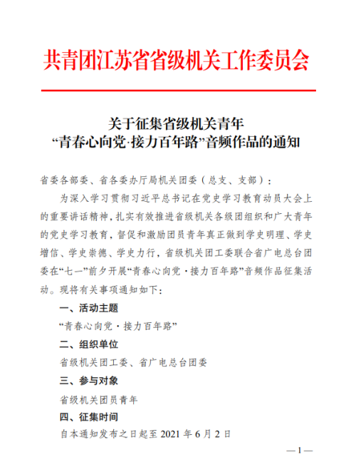 (关于征集省级机关青年“青春心向党·接力百年路”音频作品的通知)