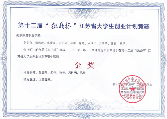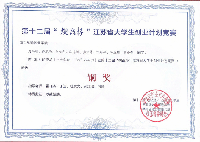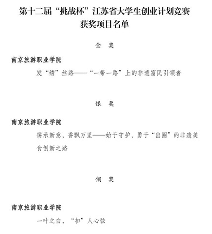 近期,共青团江苏省委对第十二届“挑战杯”江苏省大学生创业计划竞赛获奖情况进行公示,经过各二级学院、职能部门自主申报、校级决赛、全省网评、终审答辩等环节的激烈角逐,我院3个参赛作品分别揽获金奖1项,银奖1项、铜奖1项,创造了我院参加“挑战杯”省级大学生创业计划竞赛历史的最好成绩。