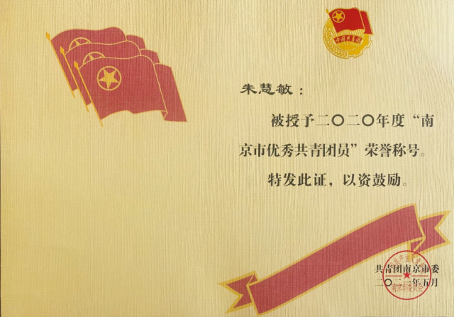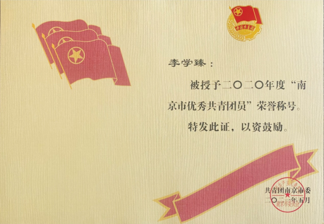2020 年以来,学院各级团组织、团干部和广大团员青年深入学习习近平新时代中国特色社会主义思想,认真贯彻落实党的十九大和十九届二中、三中、四中、五中全会精神,深化改革、锐意创新、真抓实干,为我院共青团事业的高质量发展作出了积极贡献。此次获评南京市五四红旗团(总)支部、“南京市优秀共青团团员”、“南京市优秀团干部”的奖项是对学院共青团工作的肯定,学院继续不忘初心、牢记使命,真抓实干,以高质量团建汇聚助推“强富美高”新南京建设的青春力量,以优异成绩庆祝中国共产党成立100 周年!