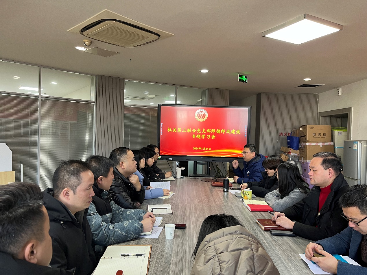 为深入学习贯彻习近平总书记关于师德师风的重要论述,大力弘扬教育家精神,认真贯彻落实立德树人根本任务,进一步加强师德师风建设,持续筑牢广大教师为党育人、为国育才的初心使命,根据学院学期末工作安排,机关第三联合党总支部于1月24日上午组织召开师德师风建设专题会议。会议由支部书记姚强主持,支部全体教职工参加会议。