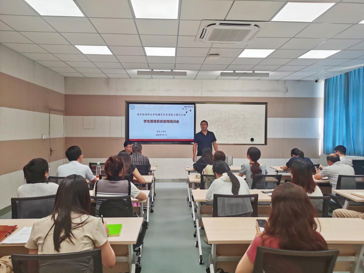 本次培训主要围绕学生工作管理信息系统功能使用进行专题培训,也是2023年新任辅导员(班主任)学生管理工作业务培训班的开班仪式。培训中,软件公司工程师向大家详细介绍了学工管理系统的建设及功能情况,并从学生基础信息管理、请假流程管理、日常事务审批、宿舍管理等主要功能模块的操作及功能介绍,为全体辅导员演示了操作流程,讲解了系统使用中的注意事项并进行了现场答疑。