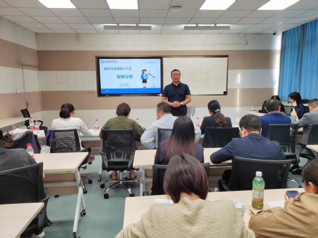 辅导员素质能力大赛是学院为辅导员队伍打造的提升思政育人素质能力的锻炼平台。在2023年全员参与的校级比赛中,共分为笔试、案例分析、谈心谈话三个专场比赛。经首轮笔试选拔,本次案例分析专项比赛共有16名辅导员参加,在案例分析比赛现场,选手们围绕现场抽取的学生管理案例积极分析,逻辑严谨、旁征博引、仪态大方、充满正能量,充分展示了学院辅导员队伍良好的素质能力和精神面貌。比赛结束后,学生工作处姚强处长现场宣布了案例分析专项的比赛成绩,并鼓励大家积极准备下一场谈心谈话比赛。