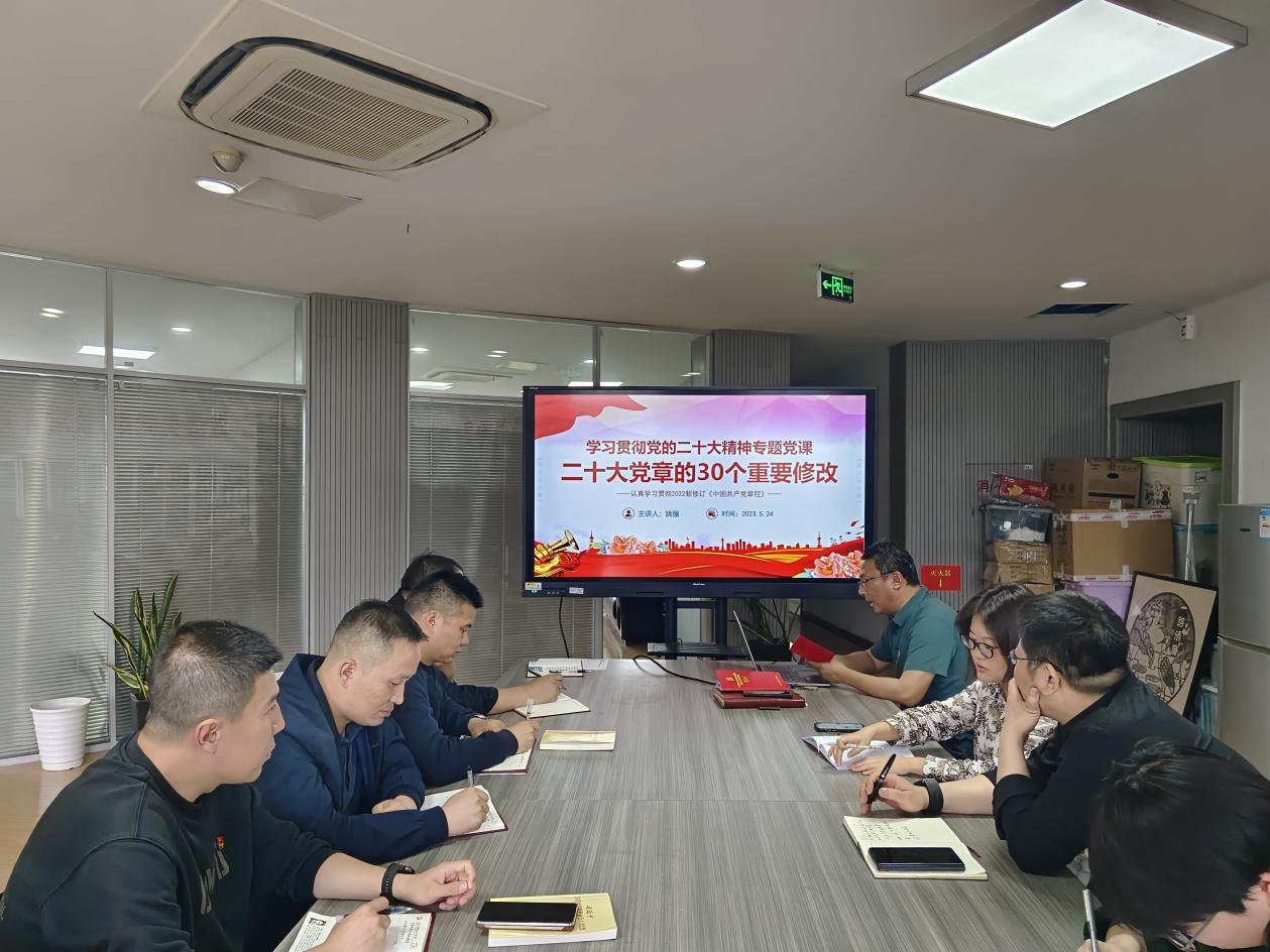 姚强以“二十大党章的30个重要修改”为授课主题,从中国共产党章程基本概述、党的二十大修改党章的重大意义、党的二十大关于党章(修正案)决议及二十大党章的30个重要修改等四个方面,向支部党员详细介绍了二十大对党章做出的具体修改内容。