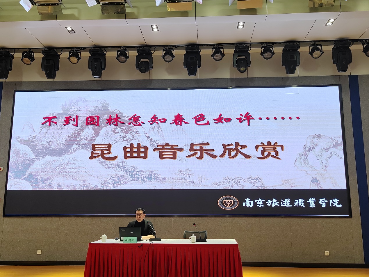 3月30日晚上,江苏省演艺集团著名作曲家、音乐制作人、国家一级演奏员孙建安应邀访问我院,在图书馆报告厅为南旅学子们带来了主题为“昆曲音乐欣赏”的精彩讲座。本次讲座是“运河文化进校园”系列讲座之一,也是课题《中华传统文化与审美素养课程开发与实施》的具体实施项目。讲座由学工处处长姚强主持,共计300位师生代表聆听了此次讲座。