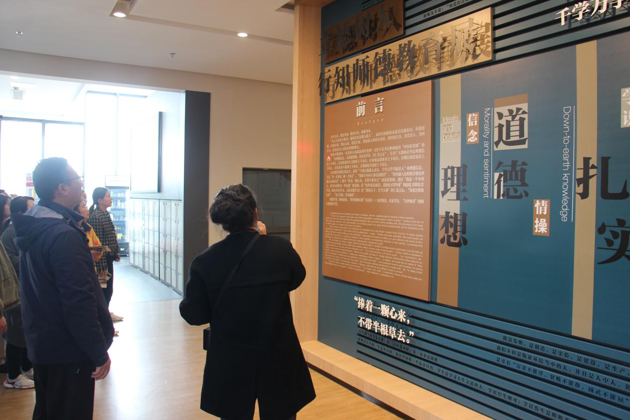在南京北郊行知园的师德纪念馆,是陶行知生平展示、教育思想研究、师德师风教育和革命传统教育的重要基地。辅导员们跟随讲解员的脚步,依次参观了“理想信念”“道德情操”“扎实学识”“仁爱之心”四个主题厅,仔细聆听陶行知先生为中国教育事业奋斗一生的光辉事迹,认真观看珍贵的照片、资料,感受陶行知先生成长为伟大人民教育家的艰辛历程以及为推动我国平民教育事业做出的巨大贡献,沉浸式重温了陶行知先生“千教万教教人求真,千学万学学做真人”的教育初心、“生活即教育”“社会即学校”“教学做合一”的教育思想,以及“爱满天下”“万世师表”的师德风范。