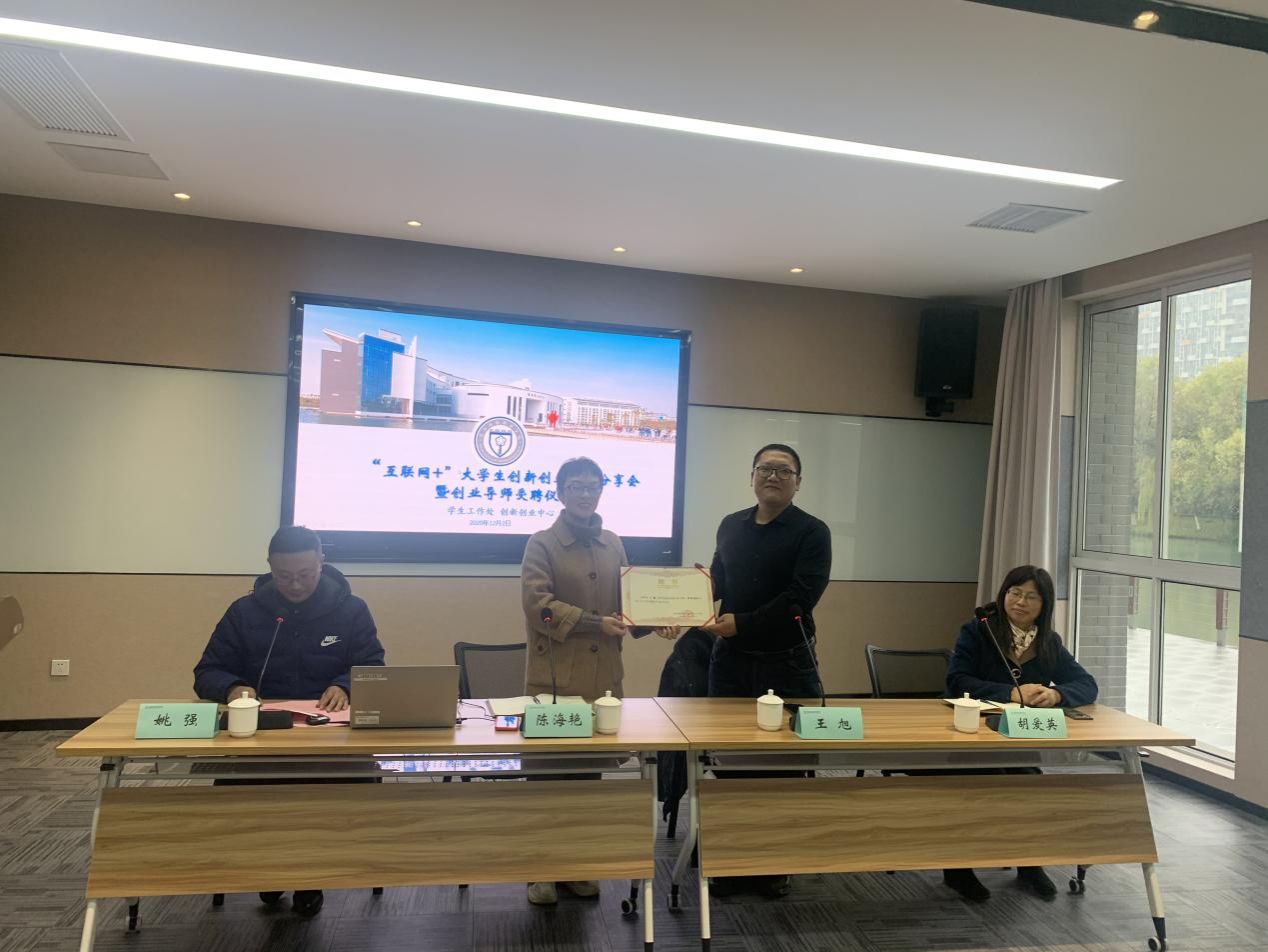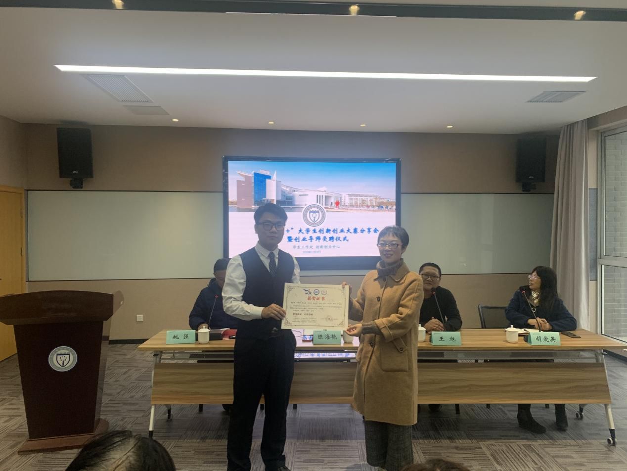 教育部创新创业导师王旭从分析大赛形势出发,讲述了自己在“互联网+”大学生创新创业大赛中的评审经历,梳理了大赛发展趋势及参赛的注意事项。他指出创新创业大赛核心是创新,大家要学会做好竞品分析,对比行业和竞争对手的项目,找出自身不足和优势所在,不断提升竞争力。作为目前国内规模最大,影响力最深远的大学生竞赛,“互联网+”大赛推动高校双创教育改革,培养造就有创新创业思维与能力的人才,促进“互联网+”新业态形成。分享会结束后陈海艳副处长为王旭老师颁发创新创业导师聘书。