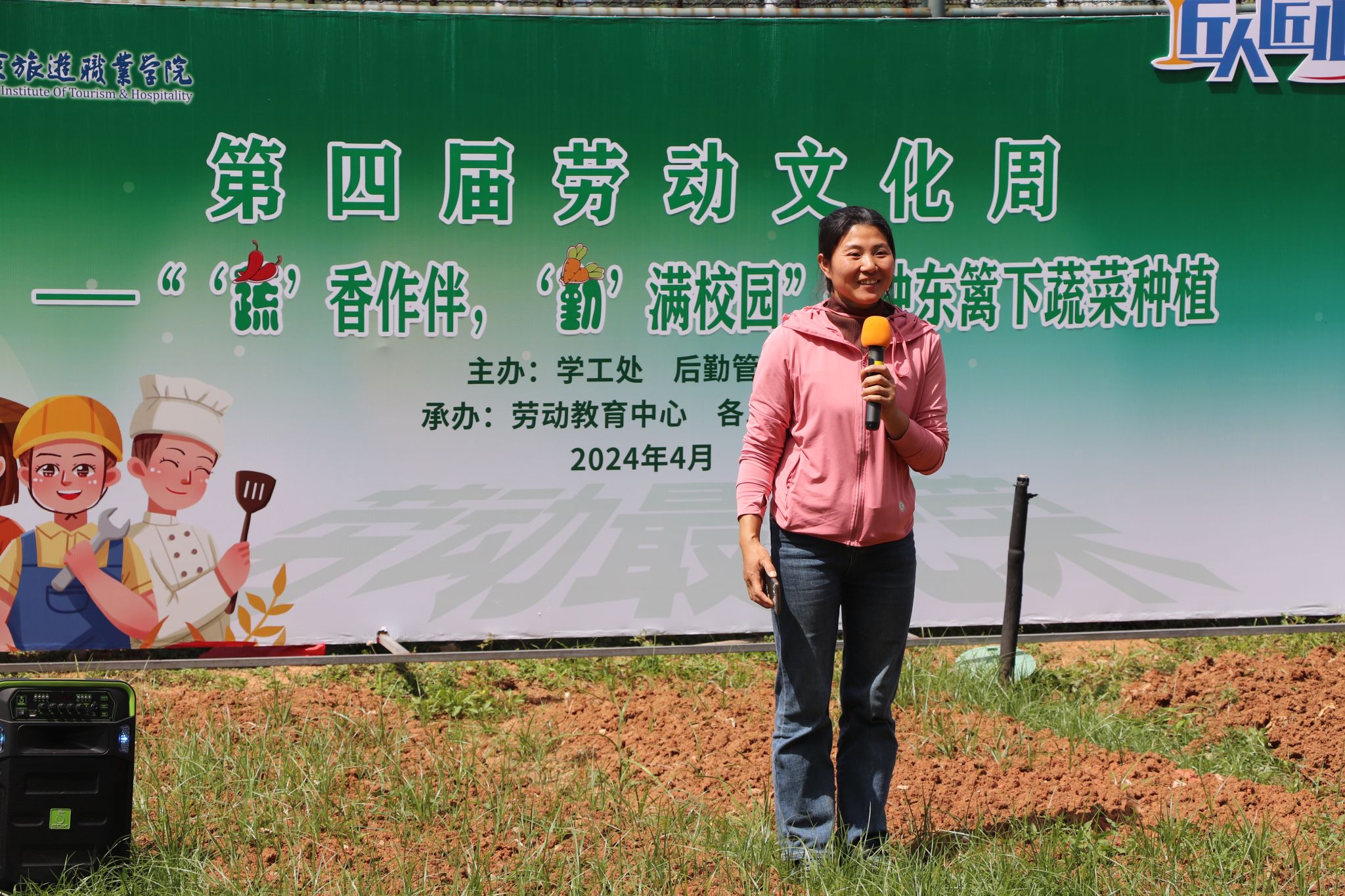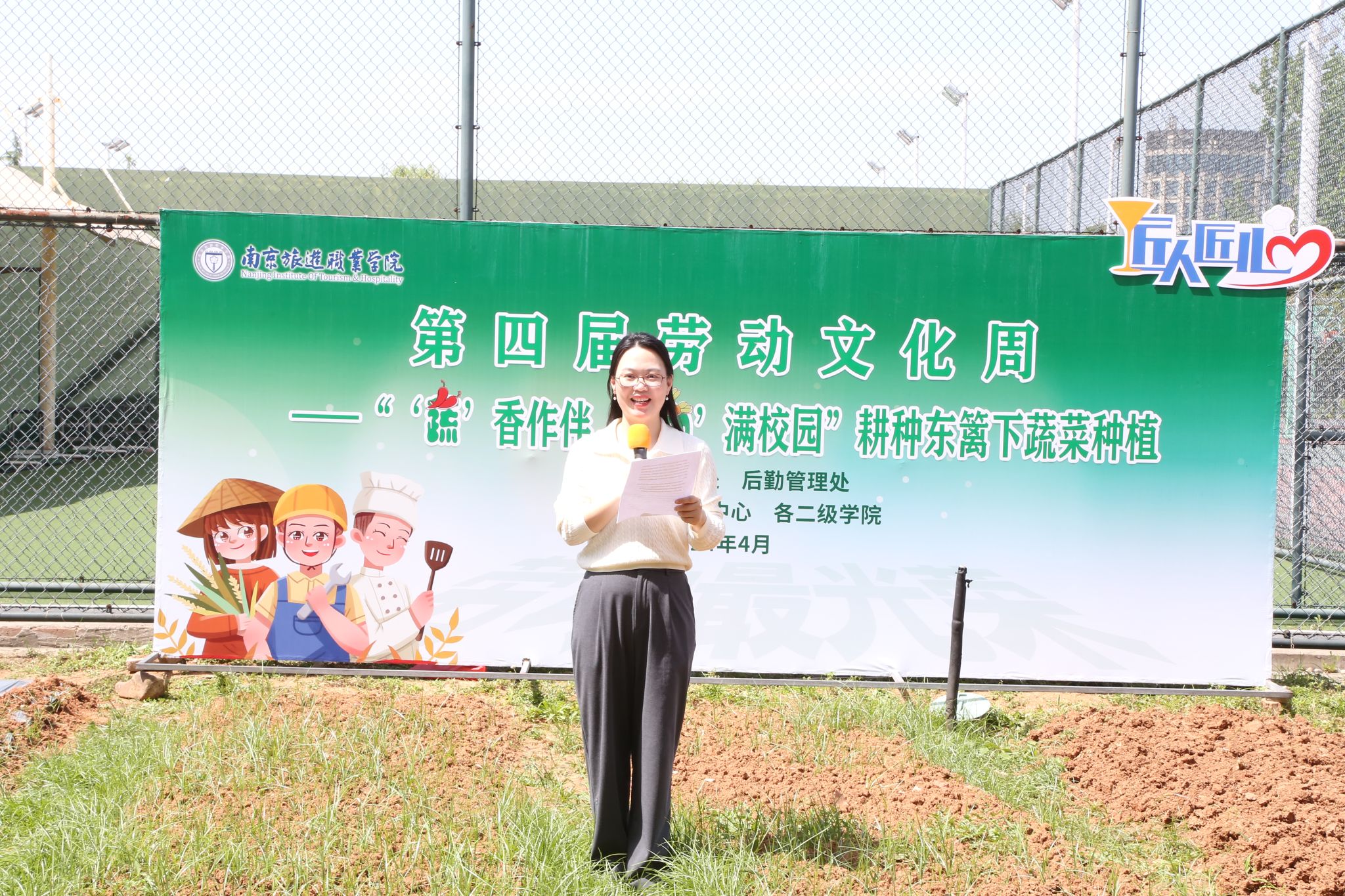为深入学习贯彻党的二十大精神,落实立德树人根本任务,将劳动教育融入人才培养全过程,教育学生崇尚劳动、热爱劳动、投身劳动,引导学生做到知行合一。4月24日下午,学工处劳动教育中心联合后勤管理处开展了“ ‘蔬’香作伴,‘勤’满校园”耕种东篱下蔬菜种植活动。参加此次活动的有学院党委副书记朱琰老师、团委书记鲁晨阳老师、学工处副处长杜文文老师、各二级学院党总支(副)书记、劳动教育专员老师及学生代表。活动由学工处劳动教育中心吴丹老师主持。