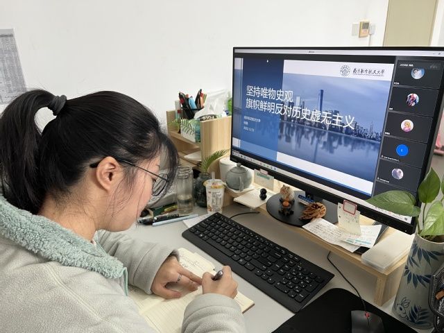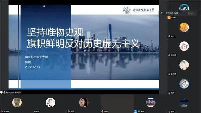 何畏老师围绕“坚持唯物史观,旗帜鲜明反对历史虚无主义”这一主题,结合丰富的案例,深入浅出地向大家阐释了如何做好意识形态工作,筑牢意识形态安全防线。作为教师,要善于洞察意识形态领域出现的历史虚无主义动向,坚决反对及时制止任何歪曲和丑化党的历史的错误倾向,努力守好党的理论阵地。