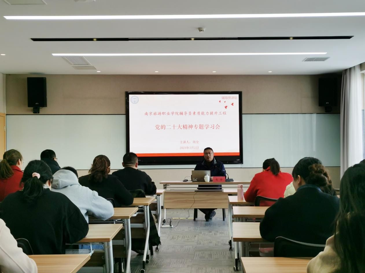 为深入学习贯彻党的二十大精神,切实提高辅导员队伍思想引领能力,3月2日下午,学生工作处、第三联合党支部主办的2023年第1期辅导员讲坛活动在行政楼111会议室成功举办。本次讲坛特邀请马克思主义学院尚全老师作题为“深刻理解中国式现代化”的专题报告。学生工作处处长姚强、副处长杜文文及相关工作人员、各二级学院党总支负责人及专兼职辅导员、第三联合党支部全体党员参加了本次讲坛,活动由学工处处长姚强主持。