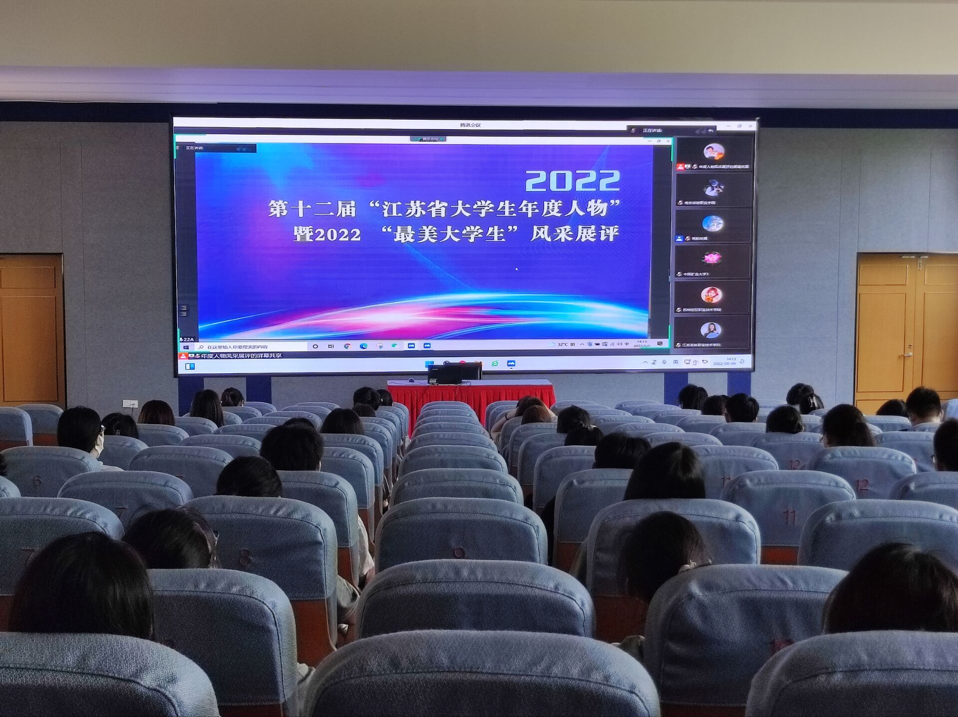 6月6日下午,我院学工处在2号教学楼报告厅举行了第十二届“江苏省大学生年度人物”暨2022年江苏省“最美大学生”风采展观摩活动。