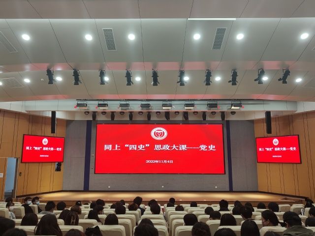 为进一步贯彻落实习近平总书记在党史学习教育动员大会上的讲话精神,积极响应教育部社科司《关于组织全国大学生“同上‘四史’思政大课”的通知》要求,11月4日下午,我院在图书馆报告厅组织学生干部、学生党员和学生代表集中观看“同上党史思政大课”视频。