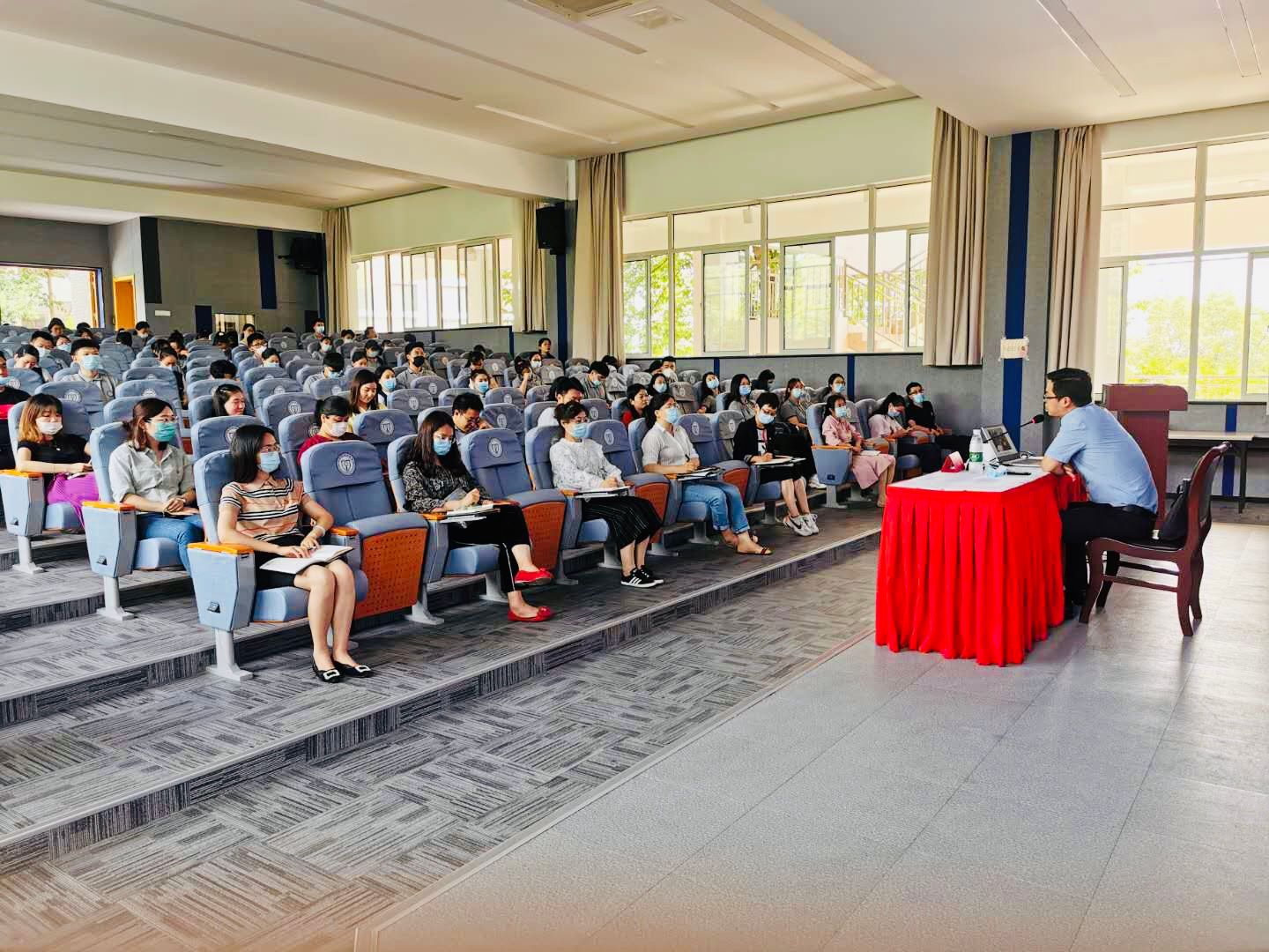 为充分用好疫情防控人民战争、总体战、阻击战形成的宝贵教育资源,弘扬抗疫精神,推动生命安全教育,增强学生家国情怀和民族自豪感,6月3日下午,学工处于2号教学楼报告厅举办了辅导员讲坛暨“弘扬抗疫精神、筑牢家国情怀”主题教育报告会,会议邀请了南京市江宁区疾控中心疾控一科科长冯智作主题报告,全体专职辅导员以及学生代表一百余人现场聆听了报告,报告会由学工处副处长陈海艳主持。