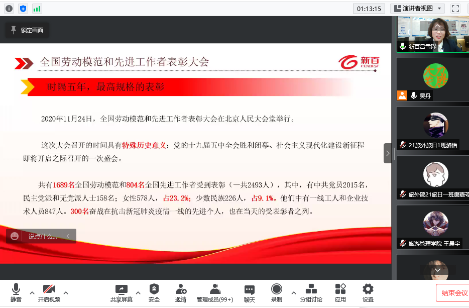 为弘扬劳动精神,强化学生劳动意识。4月29日下午,由学工处、关工委共同举办的“榜样的力量”劳模讲堂(第一期)成功举行。本期讲堂邀请了全国劳动模范南京新街口百货商店股份有限公司电子商务部&客服中心总监吕雪瑾。各二级学院的师生代表在线参与讲座。