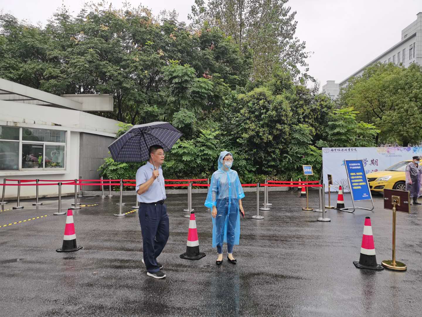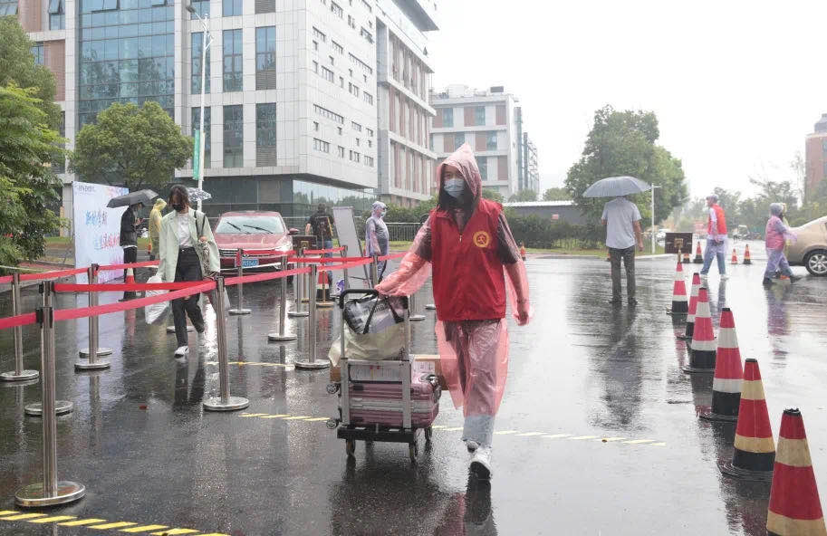 全体人员认真负责,按照返校报到流程认真开展各项返校工作。尽管当天雨水不断,大家热情不减,各岗位负责人提前到岗,高度负责,明确责任,分时段分区域,落实落细每一项工作,整个返校过程安全有序。工作人员和志愿者分布在各个岗位,测量体温、查验苏康码、确认签到、签订承诺书、领取个人健康卡、行李搬运……,热情、严谨、周到的服务让返校学生深深感受到学院的温暖和关怀。