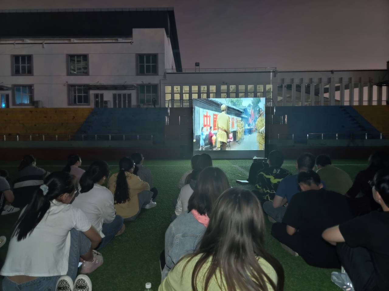 10月1日晚上六点半,第一部影片《我和我的祖国》如期而至。电影开场前,在工作人员的组织下,760名同学在操场挥舞手机灯光高喊“我爱你,中国!”现场气氛十分热烈,展现了南旅学子浓浓的爱国热情和昂扬的精神面貌。