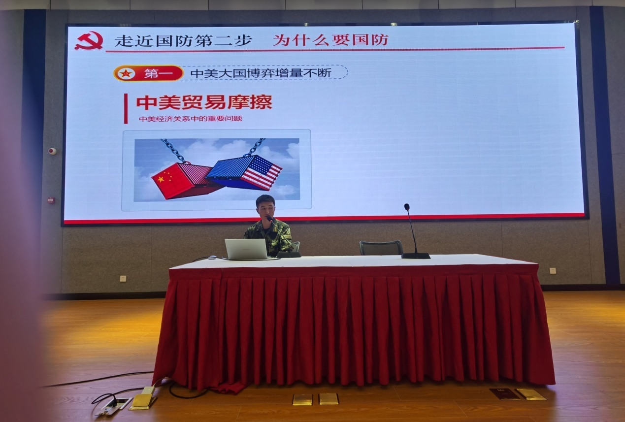 讲座中,许山从国家战略全局的高度,围绕目前中美关系、中印边境问题、台海等周边热点问题的历史现状及解决问题的战略思考、加强软实力建设等方面,全方位地透析了当前我国周边安全形势,以多元的视角、风趣的语言为在场军训学员带来一场精彩生动的国防教育课。