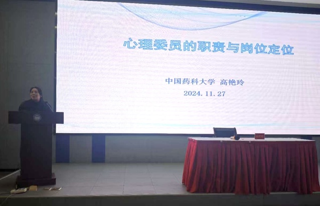 开营仪式结束后,中国药科大学心理中心主任高艳玲教授为全体心理委员做了题为《心理委员的职责与岗位定位》的讲座。高教授结合典型案例为在场的各心理委员详尽演示了心理委员如何做好学生心理健康的支持者,发挥助人功效。