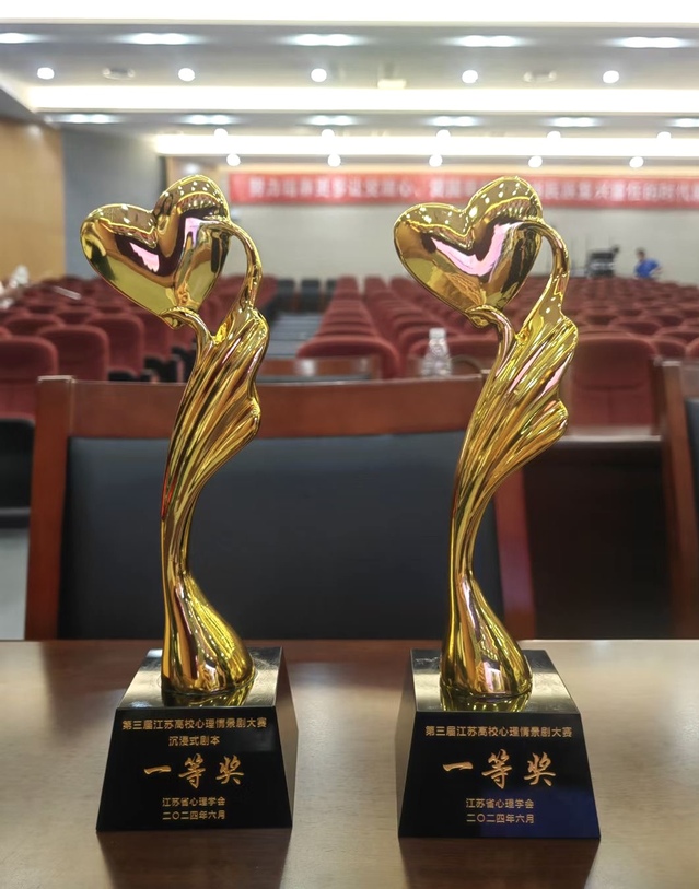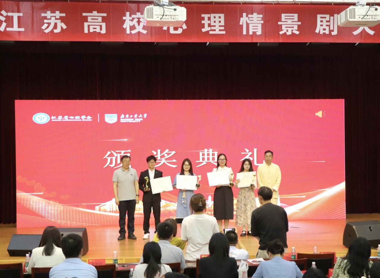 2024年6月7日,由江苏省心理学会主办,江苏省心理学会艺术心理辅导与治疗专业委员会、江苏省心理学会大学生心理专业委员会及江苏省心理学会教学工作委员会等共同承办的第三届江苏高校心理情景剧大赛落下帷幕。本届比赛共计收到全省79家高校报送的舞台心理情景剧作品110项,“沉浸式”心理剧本57项。最终,由我院心理健康教育与咨询中心指导学生创作的剧本《心灵奇旅》荣获“沉浸式”心理剧本一等奖;心理健康教育与咨询中心与大学生艺术团戏剧团共同创排并演绎的心理情景剧《送你一朵向阳花》荣获心理情景剧一等奖。