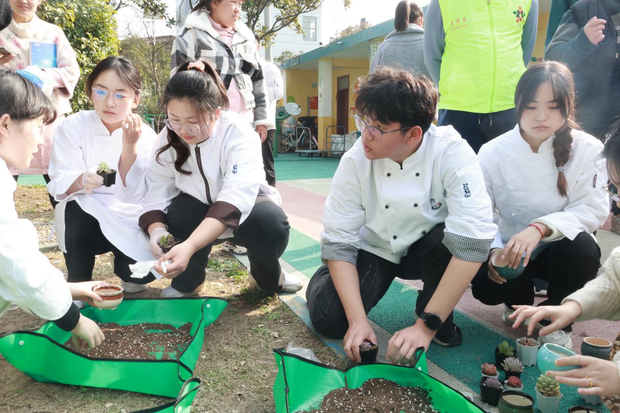 心理健康教育与咨询中心协同劳动教育中心组织开展“‘蔬’香作伴‘勤’满校园”耕种东篱下蔬菜种植活动,酒店管理学院开展“折花寄心语,赠予酒管人”折花展,烹饪与营养学院开展“以劳育心 向美而生”绿植疗心团体辅导,让学生在劳动实践中认识自我、明确方向、感悟生命、收获成就。