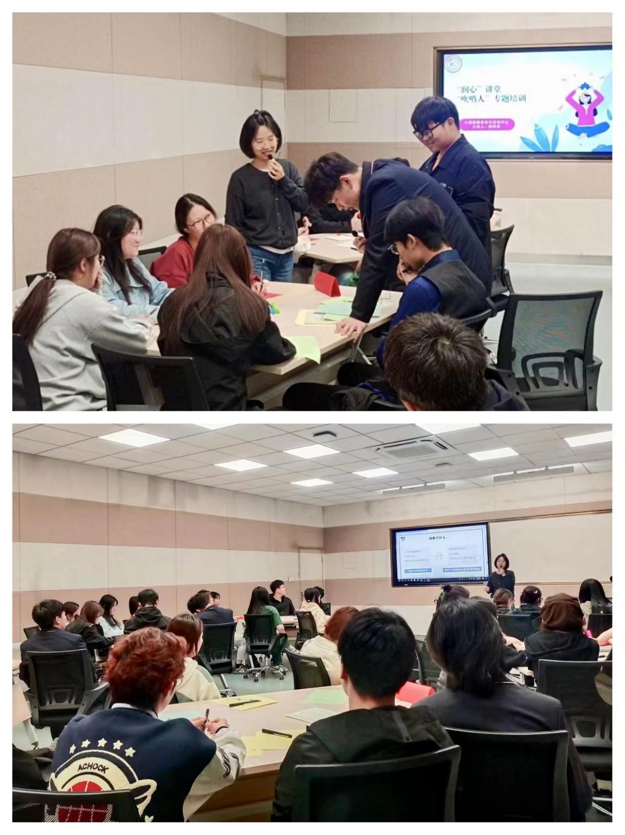 心理健康教育与咨询中心开展“润心”讲堂——“吹哨人”系列专题培训,旅游管理学院组织开展“大学生心理问题识别与预防”的专题讲座,旅游外语学院在“一站式”学生社区开展“以智慧心——心、阅、享”多语种读书会分享会主题活动,面向全院师生普及心理健康知识,以浓厚的“书香校园”氛围助力学生全面成长。