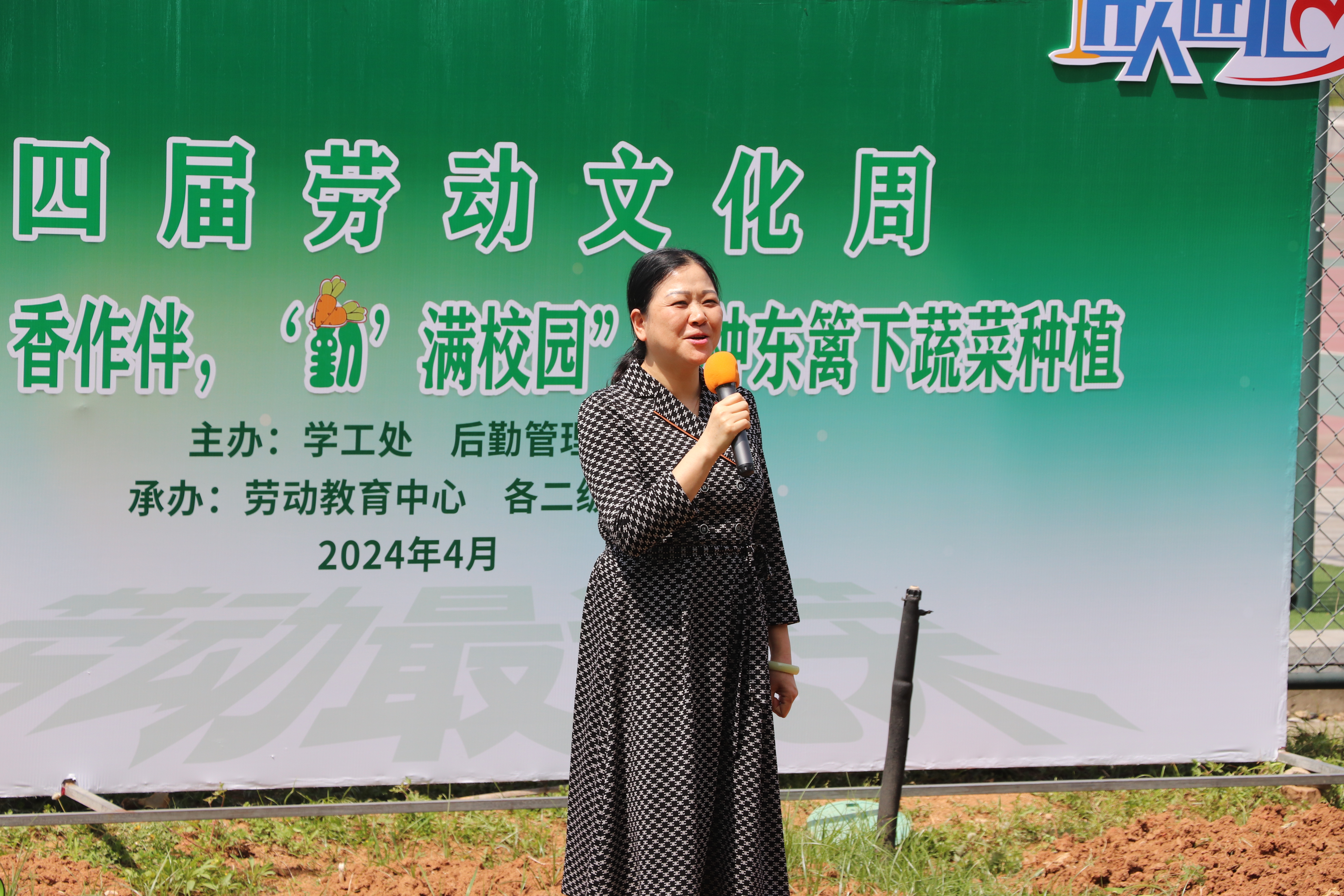 为深入学习贯彻党的二十大精神,落实立德树人根本任务,将劳动教育融入人才培养全过程,教育学生崇尚劳动、热爱劳动、投身劳动,引导学生做到知行合一。4月24日下午,学工处劳动教育中心联合后勤管理处开展了“ ‘蔬’香作伴,‘勤’满校园”耕种东篱下蔬菜种植活动。参加此次活动的有学院党委副书记朱琰老师、团委书记鲁晨阳老师、学工处副处长杜文文老师、各二级学院党总支(副)书记、劳动教育专员老师及学生代表。活动由学工处劳动教育中心吴丹老师主持。