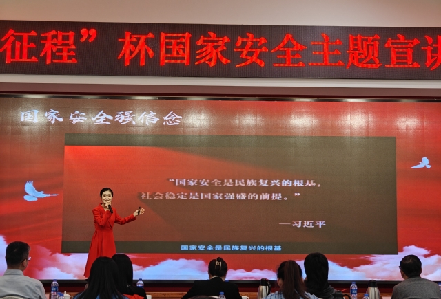 4月11日,由南京市国家安全人民防线建设领导小组办公室主办的“新征程杯”国家安全主题宣讲比赛在南京交通职业技术学院顺利举行。我院旅游英语专业学生韩冰取得总分第二名,荣获二等奖。