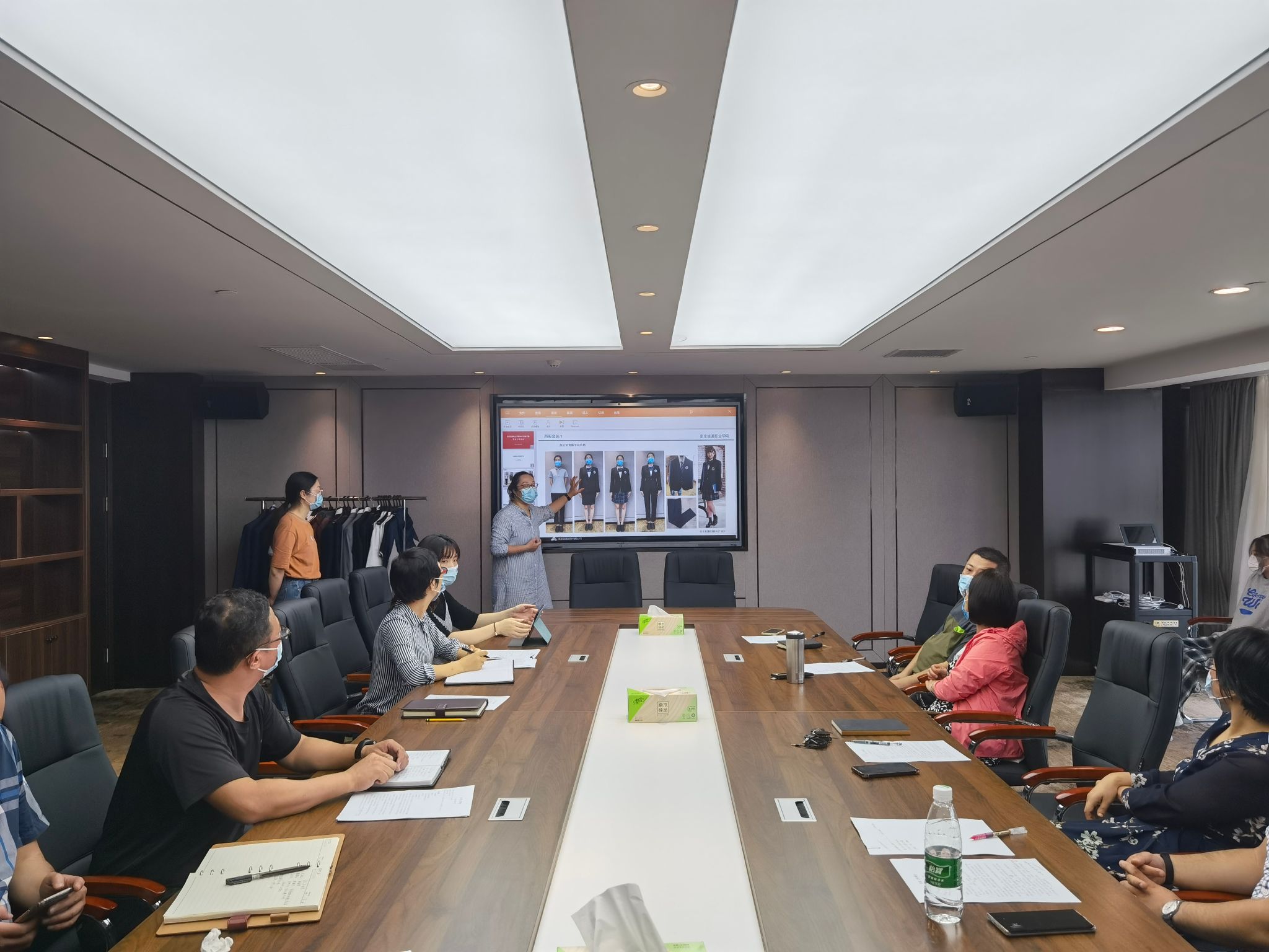 最后,2021级新生校服中标企业向与会人员展示了本次中标校服,经过大家积极商讨,最终确定了2021级新生校服款式和颜色。