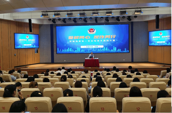 6月是学院资助诚信主题教育月,为切实加强学生诚信教育,普及金融征信知识,增强预防电信诈骗的防范意识,结合党史学习教育,把“我为师生办实事”落到实处,6月3日下午,行政第五支部所属部门学工处联合财务处在图书馆报告厅举办了“预防电信诈骗及金融征信知识”讲座,邀请校外专家现场讲解相关知识,财务处处长王茂盛、学工处副处长姚强、二级学院党总支(副)书记、全体辅导员以及学生代表200余人聆听了讲座,讲座由学工处副处长陈海艳主持。
