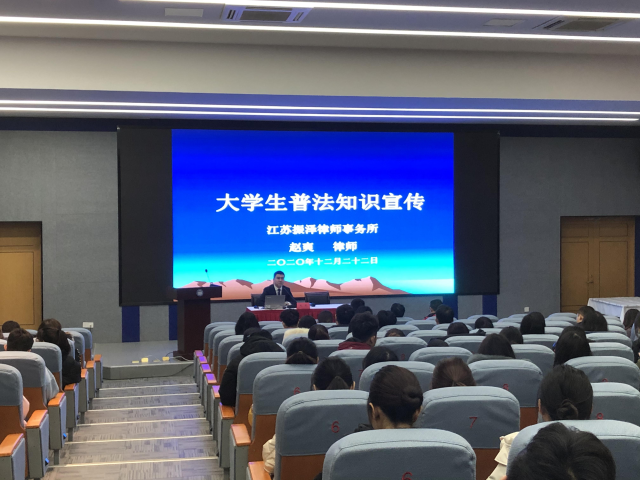 赵爽从宪法的基本知识、大学生刑事法律风险防范、大学生就业与实习、消费者权益保护以及律师建议等五个方面展开,梳理了国家根本大法《宪法》的内容框架,让同学们深刻理解了《宪法》的法律地位和特点,深入了解了国家宪法日的意义。讲座中,赵爽对刑事责任年龄、正当防卫、消费者权益等相关内容进行了详细讲解,结合社会以及校园生活中的具体案例,分析了目前大学生犯罪的原因,让同学们切实领会到法律知识缺失、法律意识淡薄的潜在危害性;对于未来的实习和就业可能存在的法律纠纷、如何维护自己的消费者权益等,赵律师也给出了专业的意见和建议。最后就大学生如何避免犯罪,赵律师从正确的价值观树立、身心健康塑造、法律知识学习以及必要时积极寻求援助等方面给出了指导建议。两个小时的讲座同学们专注投入,取得了良好的教育效果。